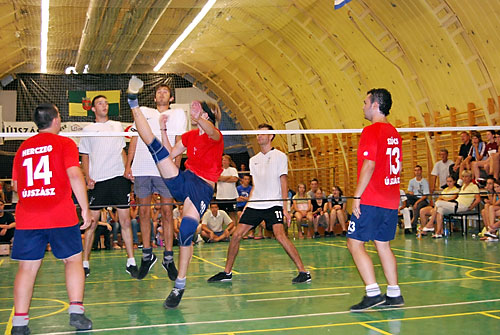 Bogár László, Boros Péter, Kézér Zsolt, Nózsi Péter (Újszászi VVSE) – Bakó János, Béki Tamás, Konka Gábor, Konka Péter (Újszászi VVSE) 21-4, 21-13. A címvédõ könnyedén nyert az utóbbi években már csak a Hungarian Openen induló technikás Konka testvérek ellen.