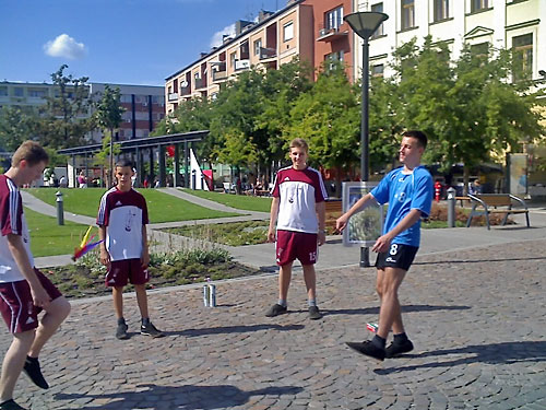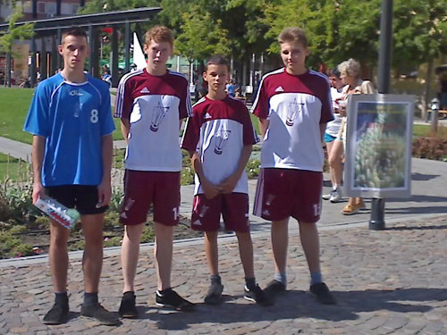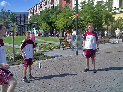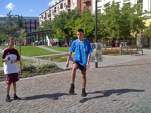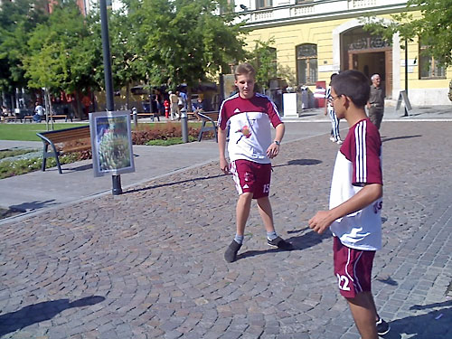 Lábtoll-labdázók Szolnok fõterén