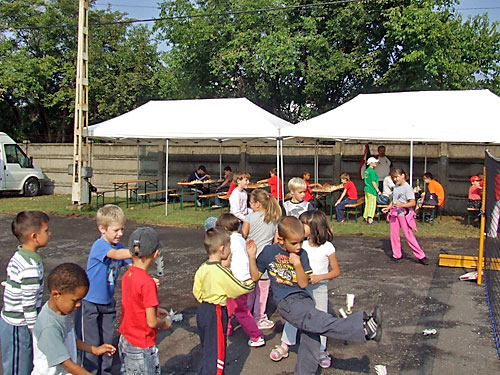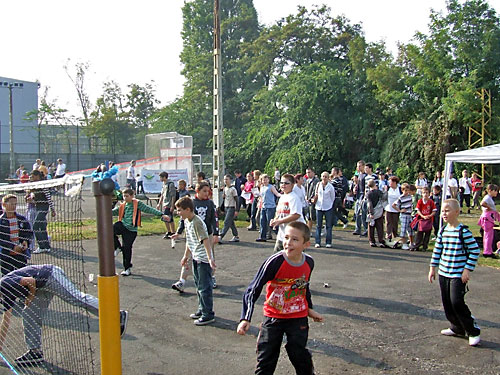 érdeklõdõvel. Egyszerre húsz labdával folyt a játék. Sorban érkeztek az iskolák