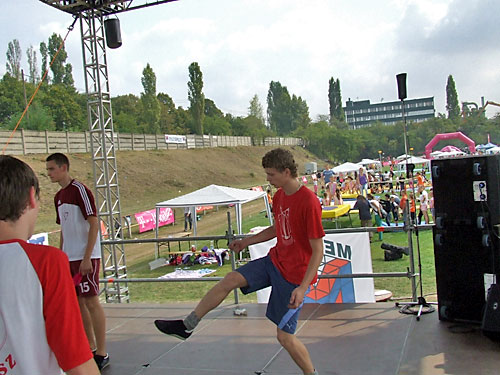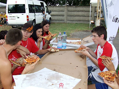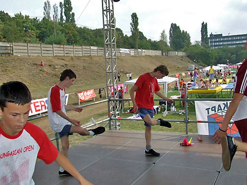 többiek. Eleinte még sikerült rögzíteni a lábtoll-labdával próbálkozók