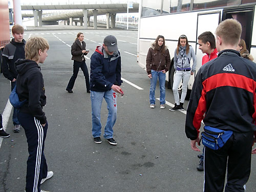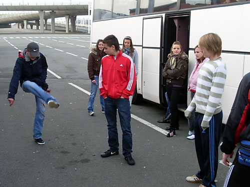 Lábtoll-labdázás a kompra várva