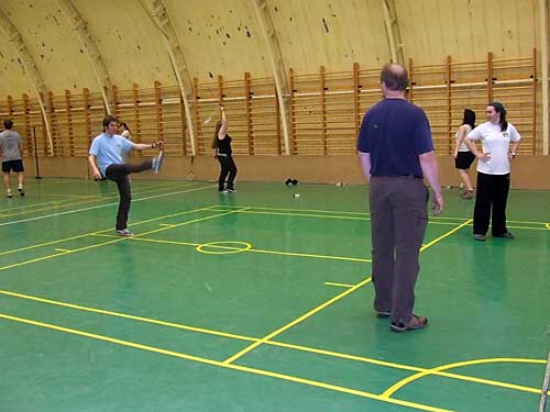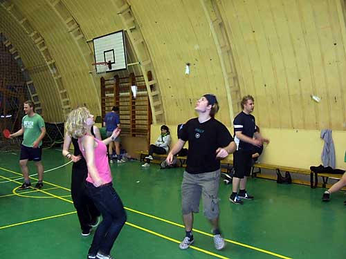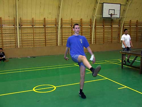 lábtoll-labdázás, hogy azonnal rúgni kezdték a toll-labdát. A következõ este az
