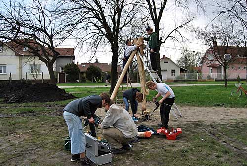 Április 9-tõl április 16-ig játszóteret építettek Újszászon a német