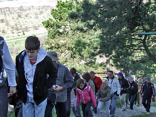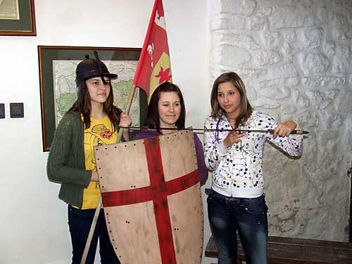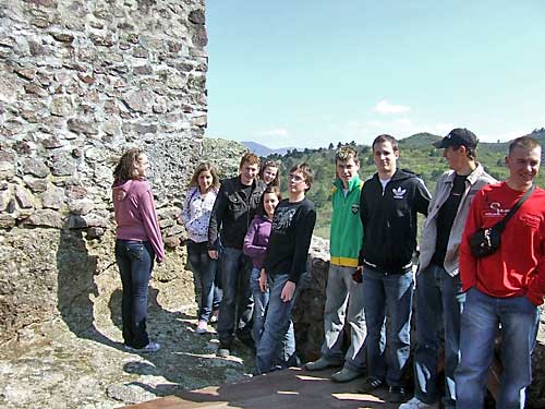 megállónál a résztvevõk megrohamozták Boldogkõ várát. Felpróbálták a sisakokat,