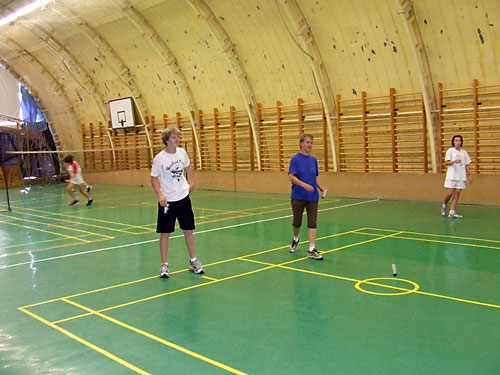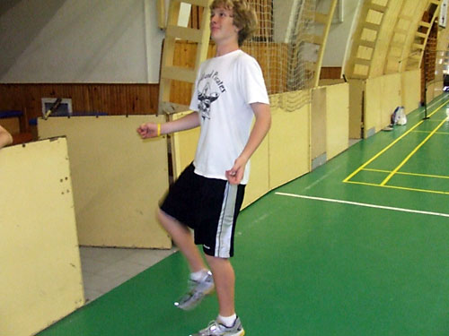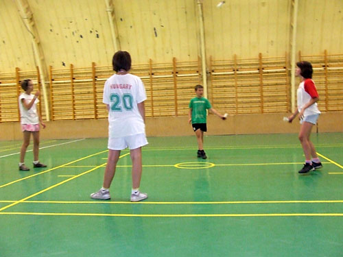 tornacsarnokban. Elõször amerikai vendégek ismerkedtek a lábtoll-labdázással.