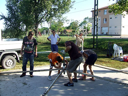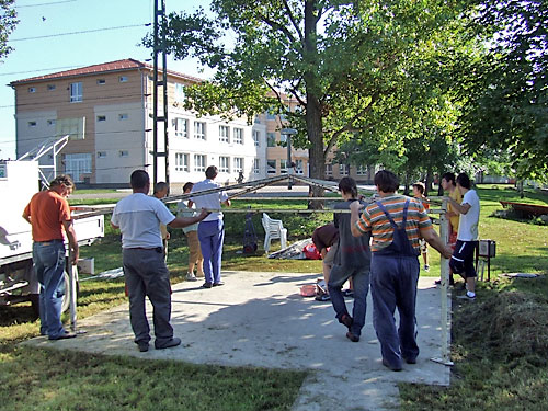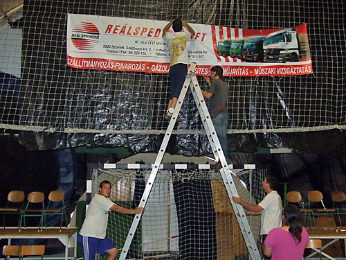 feldíszítve, a tornacsarnok környéke rendbe téve, áll a sörsátor, 120 szálláshely
