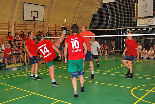 Lábtoll-labda Bajnokság férfi és nõi hármas versenyei, amelyen 9 ország –