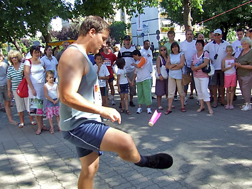 számú közönség elõtt Tóth Gábor lábtoll-labda bemutatót tartott, majd