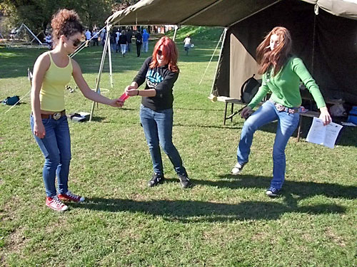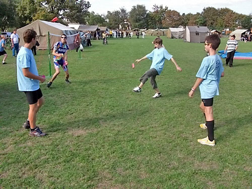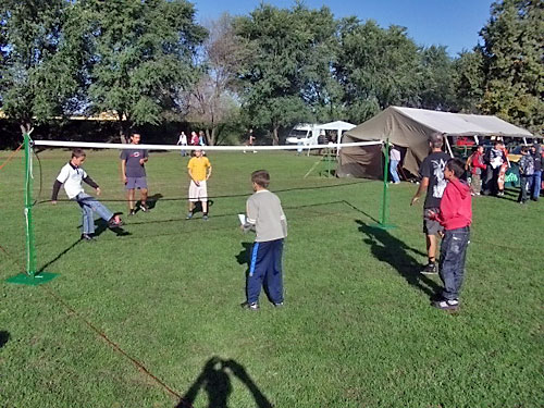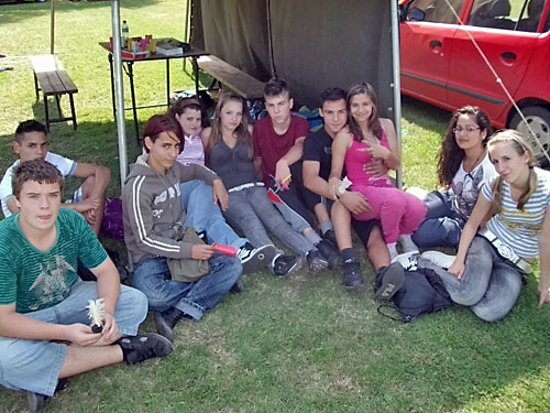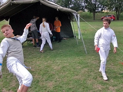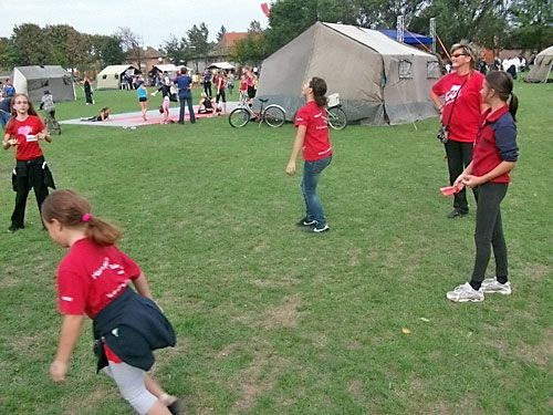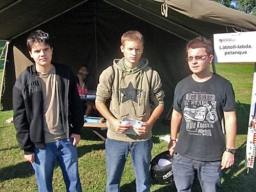 készségesen fogadtak. Katonai sátrat, asztalt, padokat kaptunk. Füves pályán,