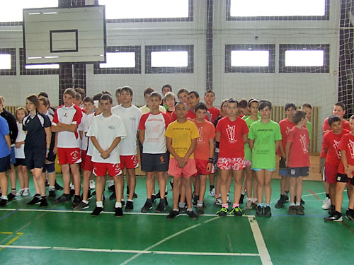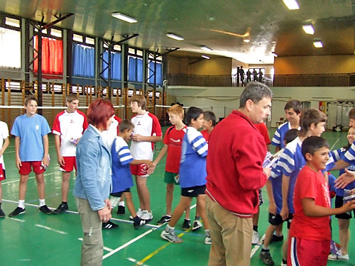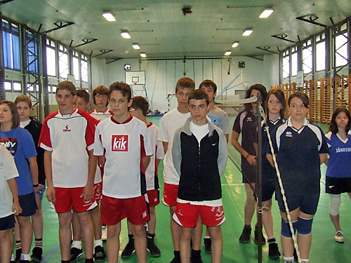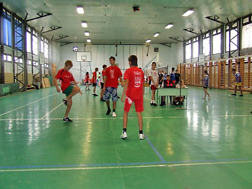 Jánoshidán a Petõfi Sándor Általános Iskola sportcsarnokában a lábtoll-labdázók