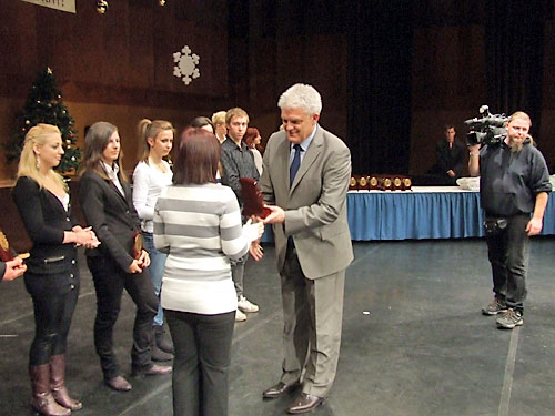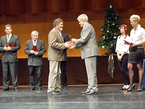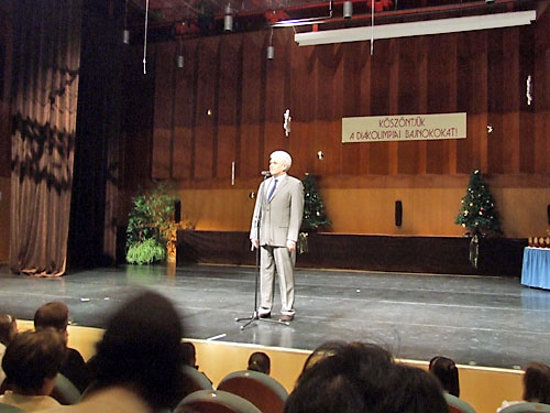 hangsúlyozó ünnepi beszédet, majd átadta a díszes plaketteket és az ajándékokat