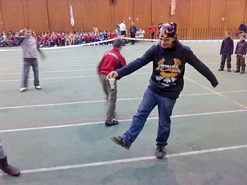 Lábtoll-labdázás a TF csarnokban