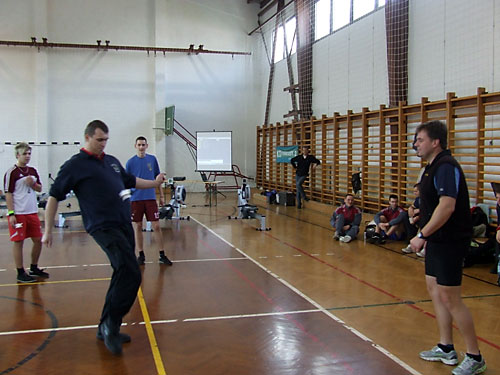 megnyitó után Fehér János vezetésével tartottak rövid lábtoll-labda