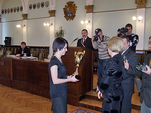 Szabó Nóra a legjobb csapatnak járó serleggel