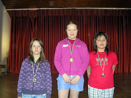 4. osztályos leányok: 2. Kocsis Nikolett, 1. Müller Petra,