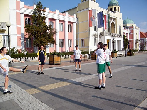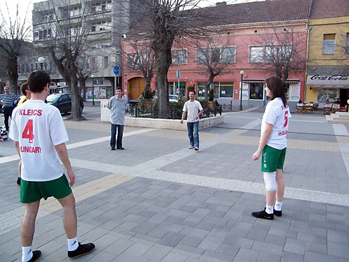 járókelõk is kipróbálhatták a lábtoll-labdázást.