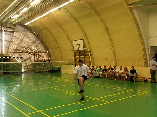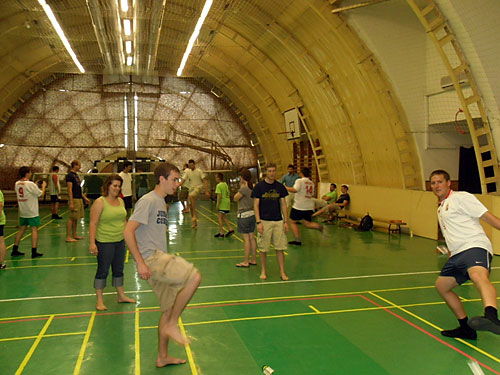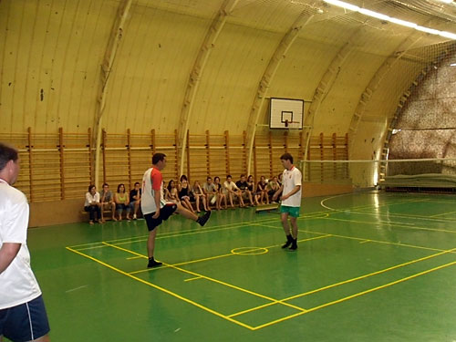 Az újszászi koncert délelõttjén a tornacsarnokba is ellátogattak a kórus tagjai, ahol a lábtoll-labdázással ismerkedtek. Tóth Gábor vezetésével (angol hangja Juhász István), Barta Martin, Farkas Balázs, Hartyányi Dániel, Herczeg Gábor, Juhász István és Oszlányi Mercédesz mutatták be a lábtoll-labdázást a vendégeknek, majd kezdetét vette a közös játék.