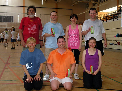A lábtoll-labdázást bemutató újszászi csapat