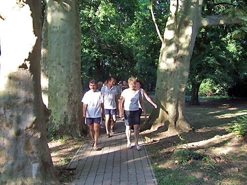 kastélypark különleges fái között. Hûsöltek a sportcsarnoktól pár lépésre lévõ