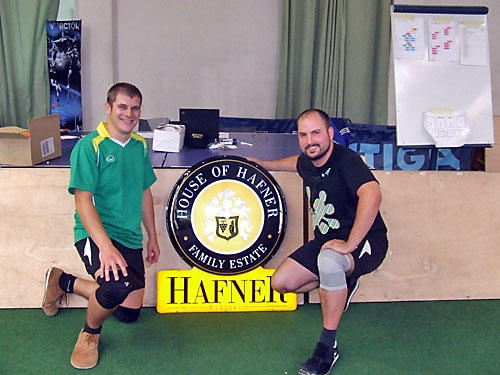 Johannes Gross és Michael Holzapfel a fõszponzor táblájával
