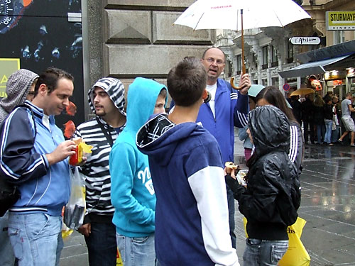 Burgtheaternél. Sétáltak a Grabenen és a Volksparkban. A jó hangulatot csak az