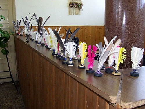 és pulyka tollakból, papírból, mûanyagból, valamint használt labdák darabjaiból