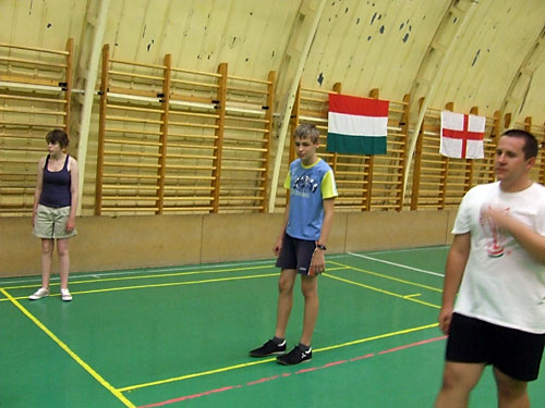 Az egyik sorban magyar fiúk a másikban angol lányok