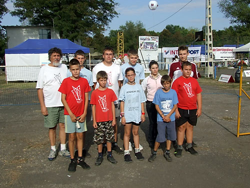 Róbert, Kanálos Dániel, Kanálos Júlió, Gergi Róbert és Zsákai Milán lábtoll-labdázott
