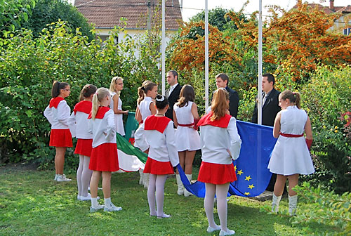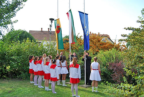 A zászlófelvonók: Szûcs Gergely, Barta Ferenc és Herczeg