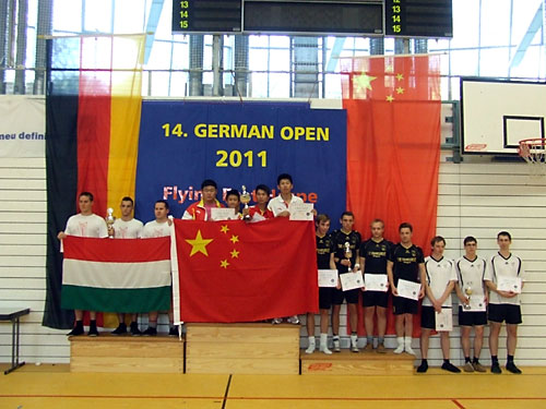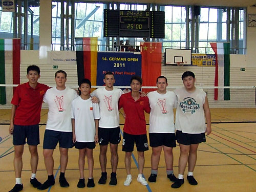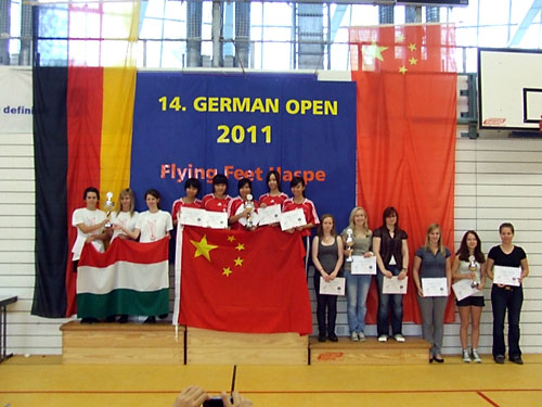 Férfi hármas: 2. Újszászi VVSE, 1. Kína, 3. FFC Hagen, 4.