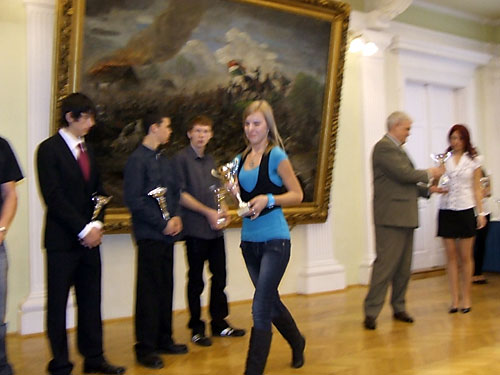 Gulyás Adrienn (Verseghy Gimnázium) veszi át a serlegét