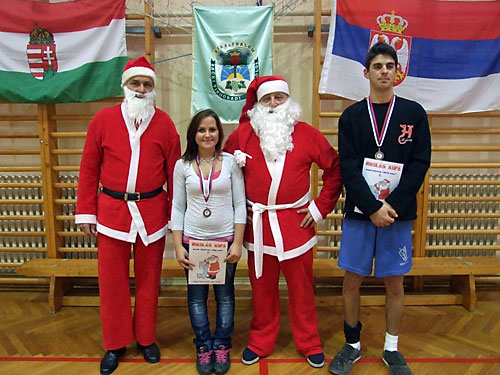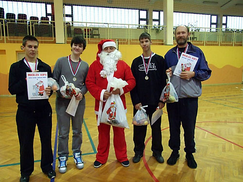 lábtoll-labdázók. A hagyományos Mikulás Kupán mérkõztek meg a házigazdákkal.