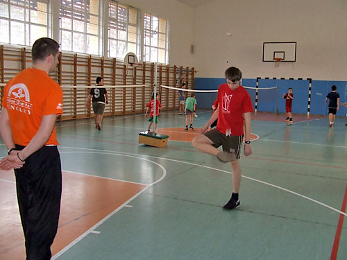 versenyzõit hívta meg ellenfélnek. A két csapat a lábtoll-labdázás több