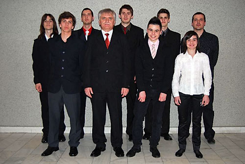 A ZSE díjazott sportolói edzõjükkel. Balról: Kovács