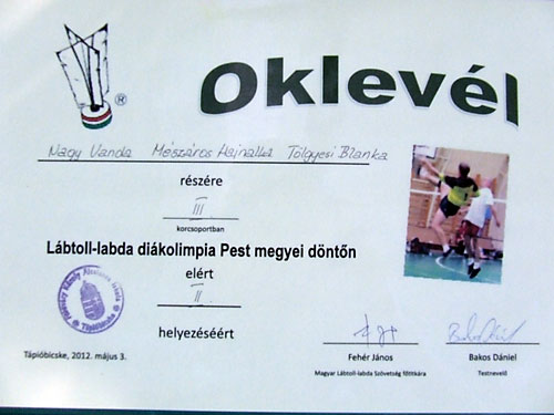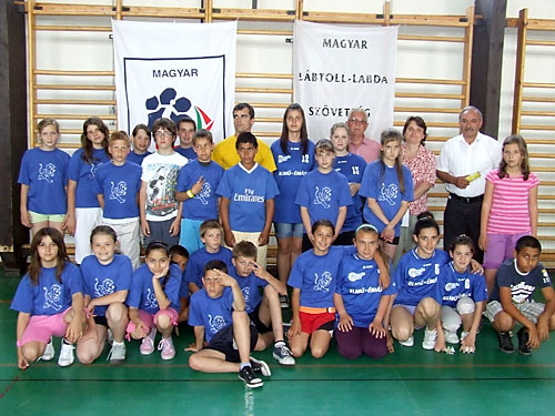 A résztvevõk lábtoll-labdás emléklapot, a bajnokok és a dobogósok