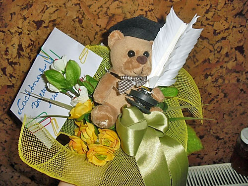 rokonaitól különleges csokrot kapott. A csokrot egy lábtoll-labda díszítette.