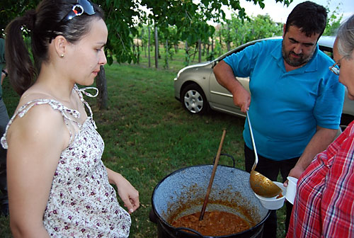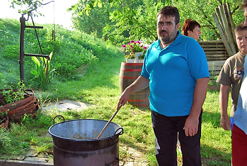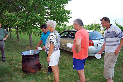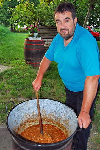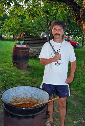 diófa alatt Tóth István finom sertéspörköltet fõzött, amit a pincézõk