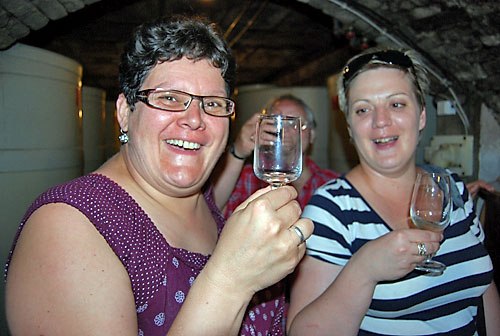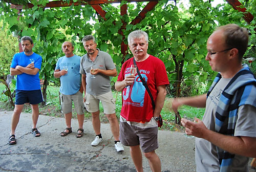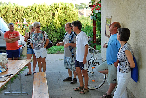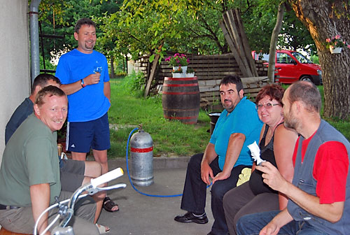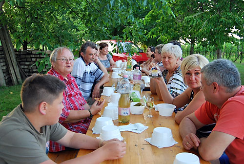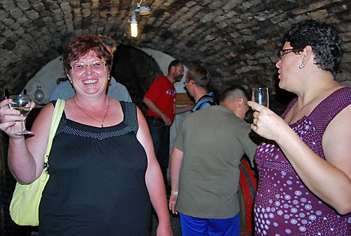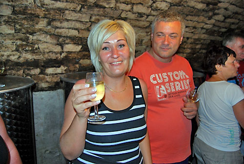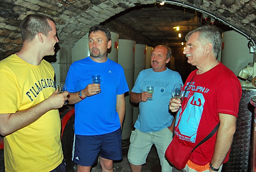 kóstolt a társaság. Míg a pincében a borkóstolás zajlott, addig fenn a nagy