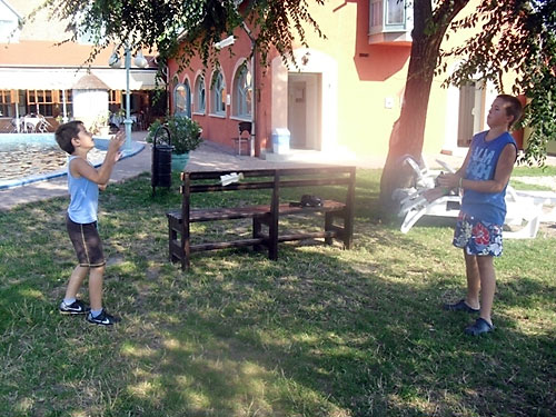 Lábtoll-labdázás az érdi Termál Hotel parkjában