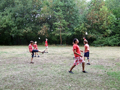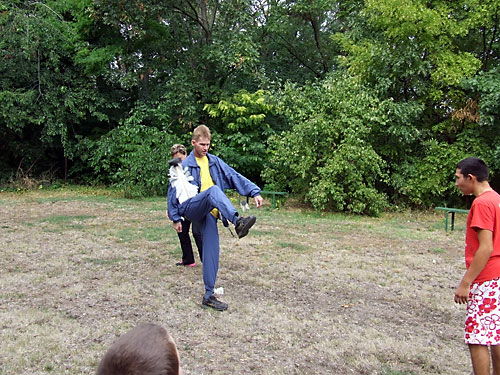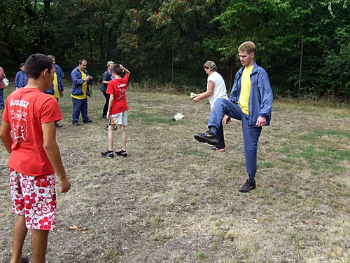 tollrúgáshoz és a gyerekek közremûködésével kipróbálták a lábtoll-labdázást.