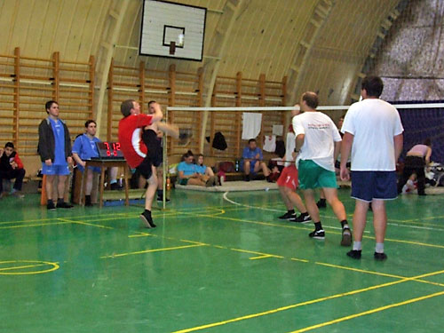 Pusztaszer - Nagykanizsa mérkõzés. A hálónál Barócsi Andor