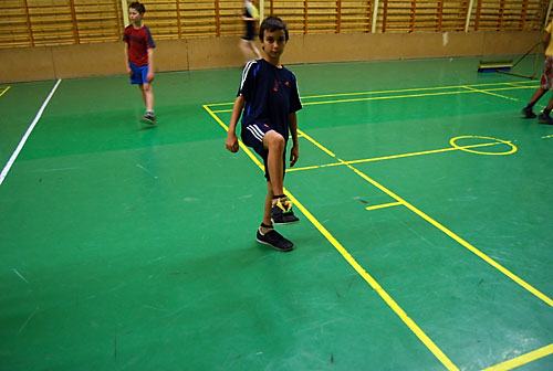 lábtoll-labda. Az egyszerûen elkészíthetõ játékszer dekázásra, passzolgatásra,