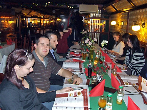 János, a szakosztály vezetõje tizenkét játékost hívott meg vacsorára. A
