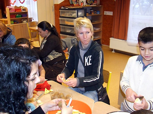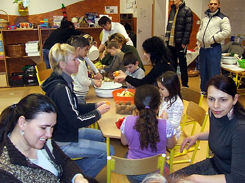 szorgalmasan dolgoztak. Végül egy-egy kóstoló falat után a résztvevõk a szépen