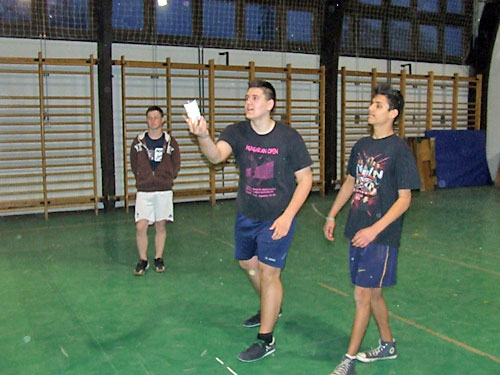 Árva Tamás, Lõrincz Tamás és Nagy Máté lelkes tápióbicskei diákok március 26-án megrendezték az elsõ Pest megyei V. korcsoportos lábtoll-labda diákolimpiát. Az elsõ rendezvényre viszonylag kis létszám – négy iskola 12 versenyzõje – jött össze. A résztvevõk lelkesedését látva azonban lesz ez a létszám nagyobb is. Egyéniben a két fõszervezõ – Lõrincz Tamás (Török János Szakközépiskola Cegléd) és Árva Tamás (Bem József Szakközépiskola Cegléd) döntõzött. Izgalmas, fordulatos mérkõzésen Lõrincz nyert 15-7, 7-15, 15-11-re. Jól játszott az egyetlen leány versenyzõ Nagy Andrea (Kossuth Lajos Gimnázium Cegléd), aki három fiút legyõzve az ötödik helyen végzett. A hármast a ceglédi Török János Szakközépiskola Farkas Krisztián, Gál Imre, Lõrincz Tamás összeállítású triója nyerte.