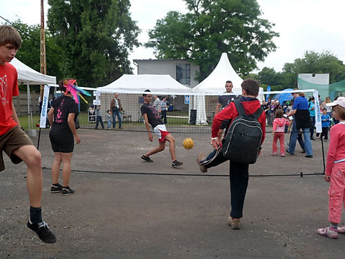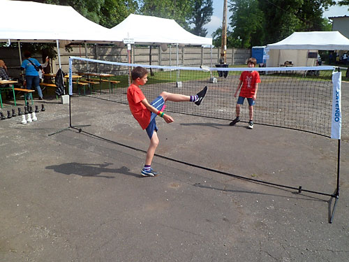 Roland, Turza Beatrix és Zele Richárd népszerûsítették a lábtoll-labdázást és