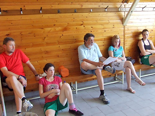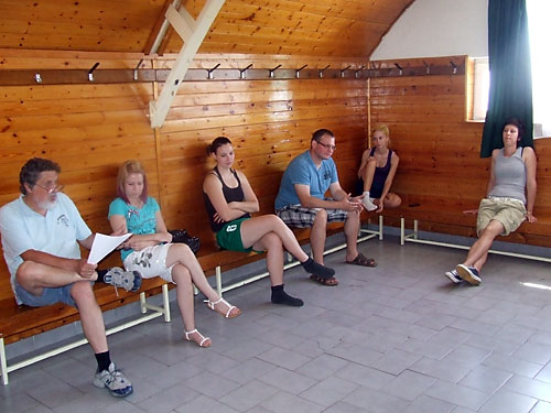Az elsõ csapatgyûlésen: Fehér János, Joó Anett, Ézsiás