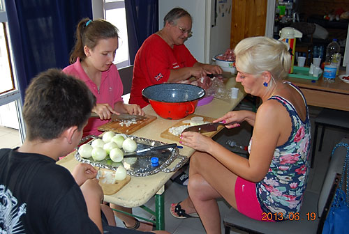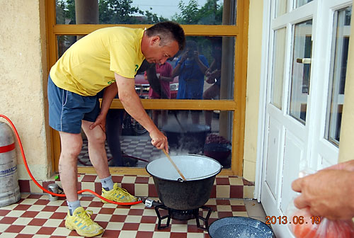 neki. A közös munkával készült finom sertéspörkölt elfogyasztását még a vihar