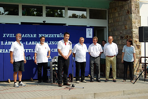köszöntötte a 18. Nyílt Magyar Nemzetközi Lábtoll-labda Bajnokság résztvevõit.
