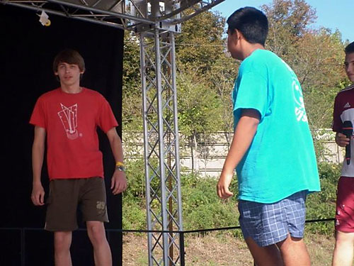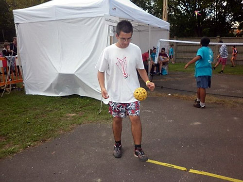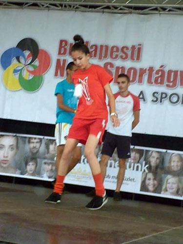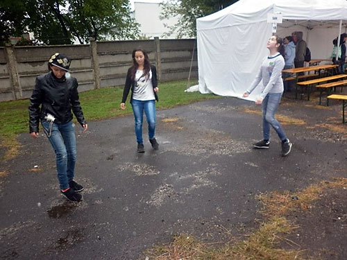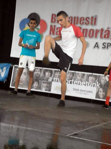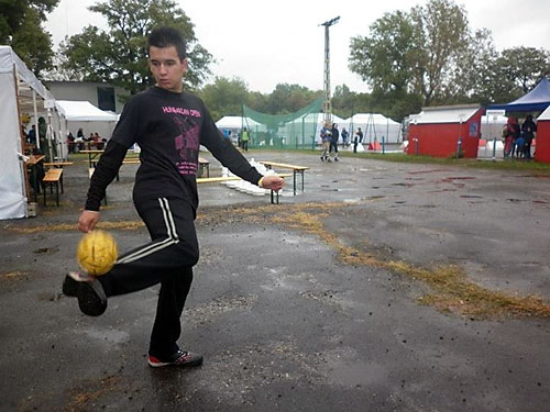A második napon Fehér János vezetésével Czipó Péter, Csák Dávid, Csák Vivien, Farkas Levente, Fehér Valéria, Kanalas Renátó, Kanálos Júlió, Kenyeres Lívia, Kovács Evelin, Kovács Gergõ, Németh Márk, Ráski Lajos, Turza Beatrix, Tûri Alexandra és Zele Richárd játszott volna az érdeklõdõkkel, akik a rossz idõ miatt nagyon kevesen voltak. A kevés próbálkozóval az esõben történõ játék addig tartott, amíg a labdák el nem áztak. A labdákkal együtt a játékosok is alaposan átáztak. Csák Dávid, Kanálos Júlió, Kenyeres Lívia, Ráski Lajos bemutatója a vizes, csúszós színpad ellenére jól sikerült. Különösen Csák Dávid volt elemében.